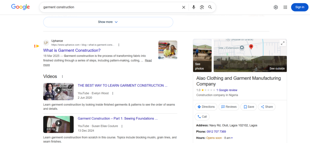 Ranking #1 for the search term “garment construction”