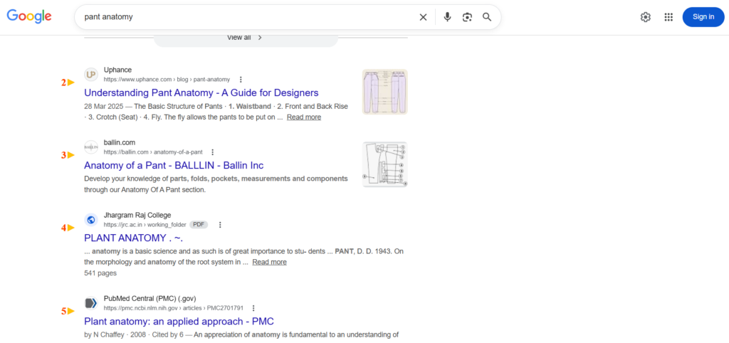 Ranking #2 for the term “pant anatomy”