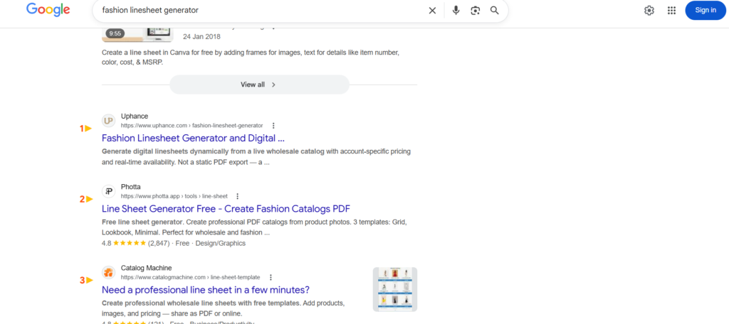 Ranking #1 for the search term “fashion linesheet generator”